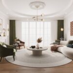 The interior design across these spaces reflects a seamless blend of luxury, modernity, and functionality, all within a 2-storey double brick residence with concrete slabs and luxury French-style finishes. The bathroom features large-scale marble finishes with natural veining, a frameless glass shower enclosure, and a freestanding bathtub, creating a spa-like retreat with black fixtures adding bold contrast. Moving into the foyer, the grand design is highlighted by a double staircase with wrought iron railings, marble flooring, and a stunning chandelier suspended from a domed ceiling with intricate molding, exuding elegance and grandeur. The master bedroom continues the luxurious theme with a neutral color palette, soft textures, an upholstered headboard, and built-in wardrobes, complemented by large windows that allow natural light to flood the space. The study is designed for sophistication and productivity, with a custom shelving unit, a sleek desk with gold accents, and expansive windows that maintain a bright and inspiring atmosphere. Across all spaces, the use of high-end materials, refined finishes, and meticulous attention to detail creates a cohesive and opulent living environment.
