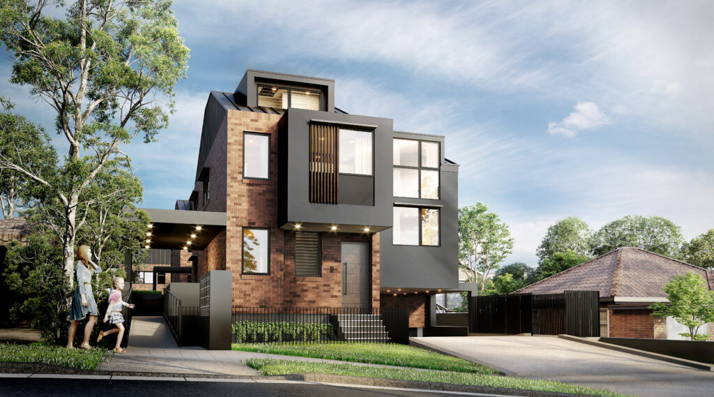 Located in Hornsby, this commercial development comprises 20 units constructed with concrete slabs and lightweight structural systems. The design emphasizes a modern aesthetic, featuring large glass openings that allow for abundant natural light and a strong connection between indoor and outdoor spaces.
